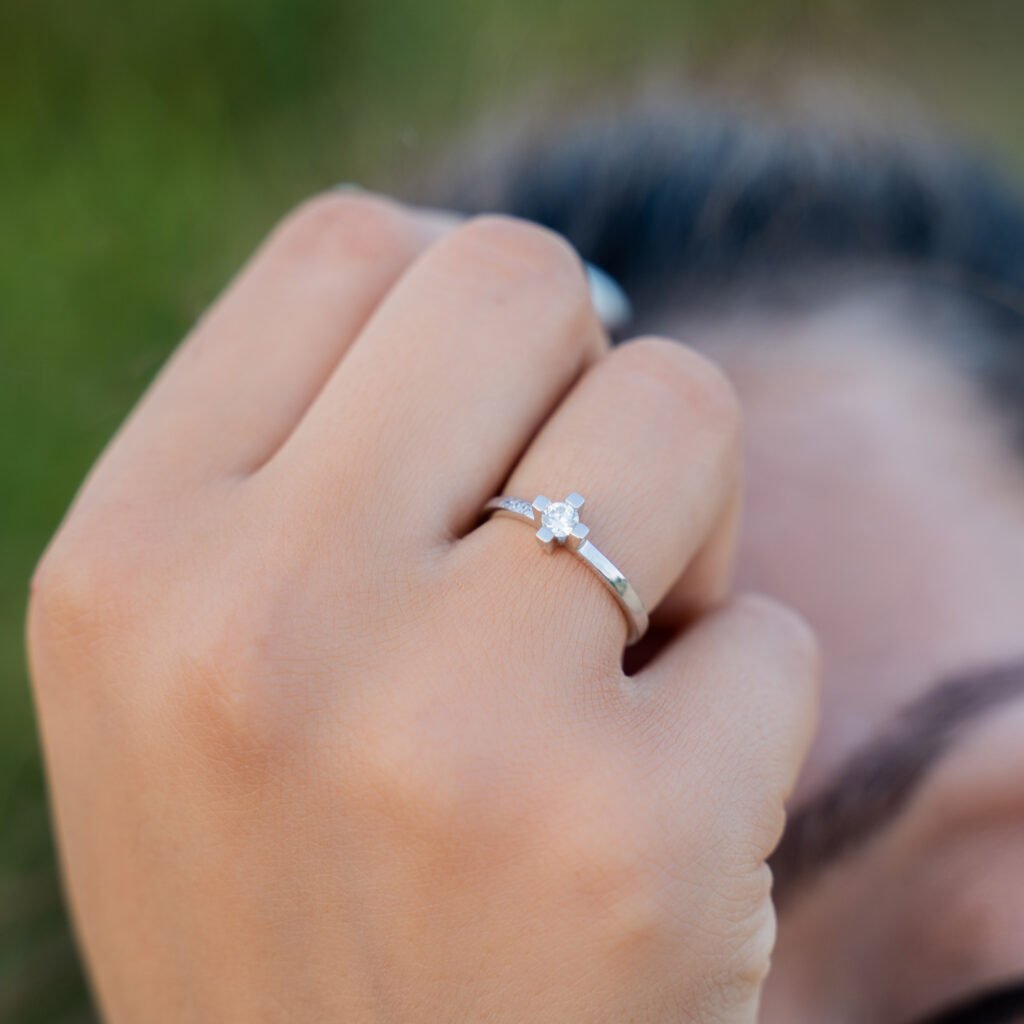 Λευκόχρυσο δαχτυλίδι “sleek square unbalanced” με lab grown διαμάντια