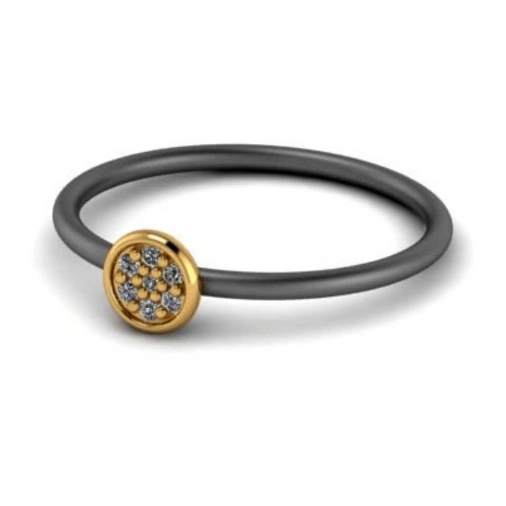 Ασημένιο δαχτυλίδι σε σατινέ φινίρισμα με ζιργκόν και χρυσές λεπτομέρειες
