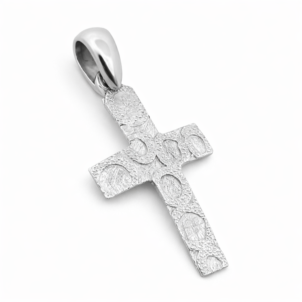 Χειροποίητος κομψός λευκόχρυσος σταυρός 9 καρατίων.