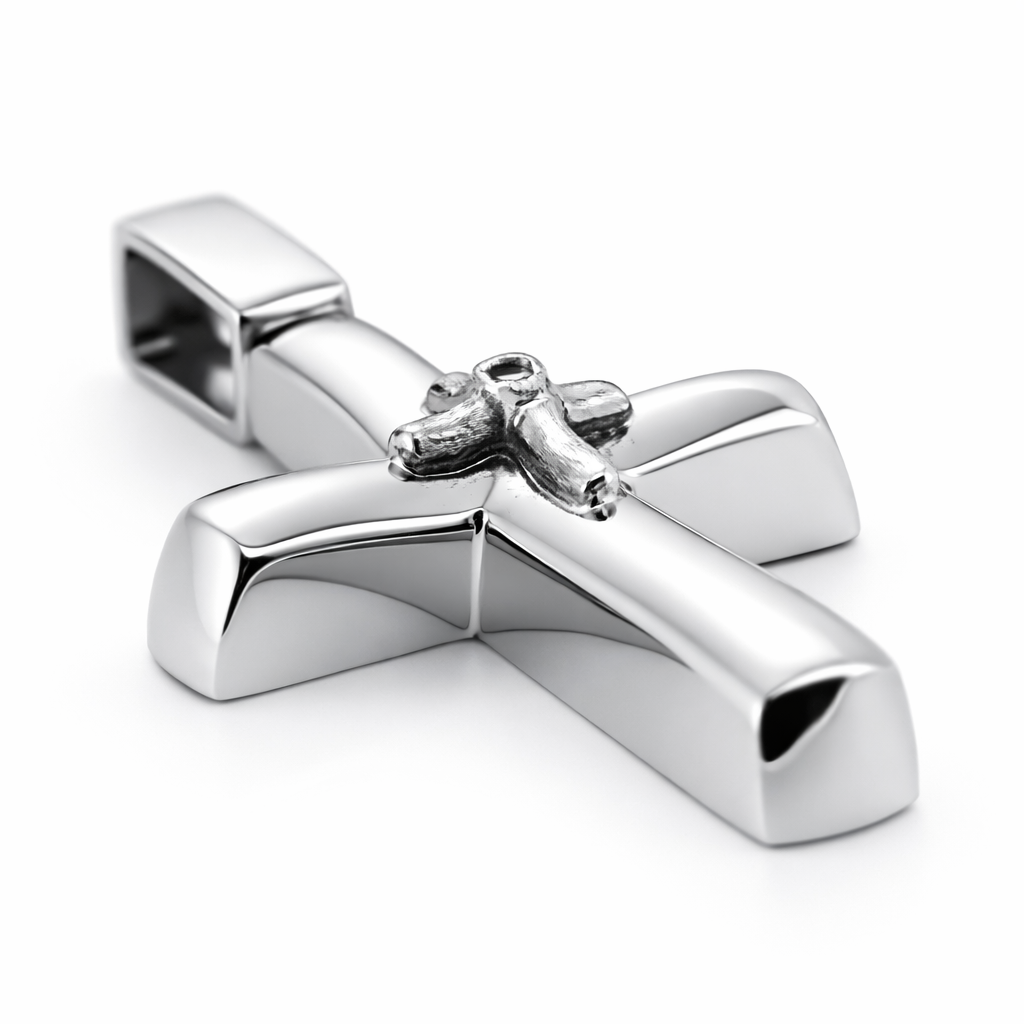 Χειροποίητος κομψός λευκόχρυσος σταυρός 14 καρατίων.