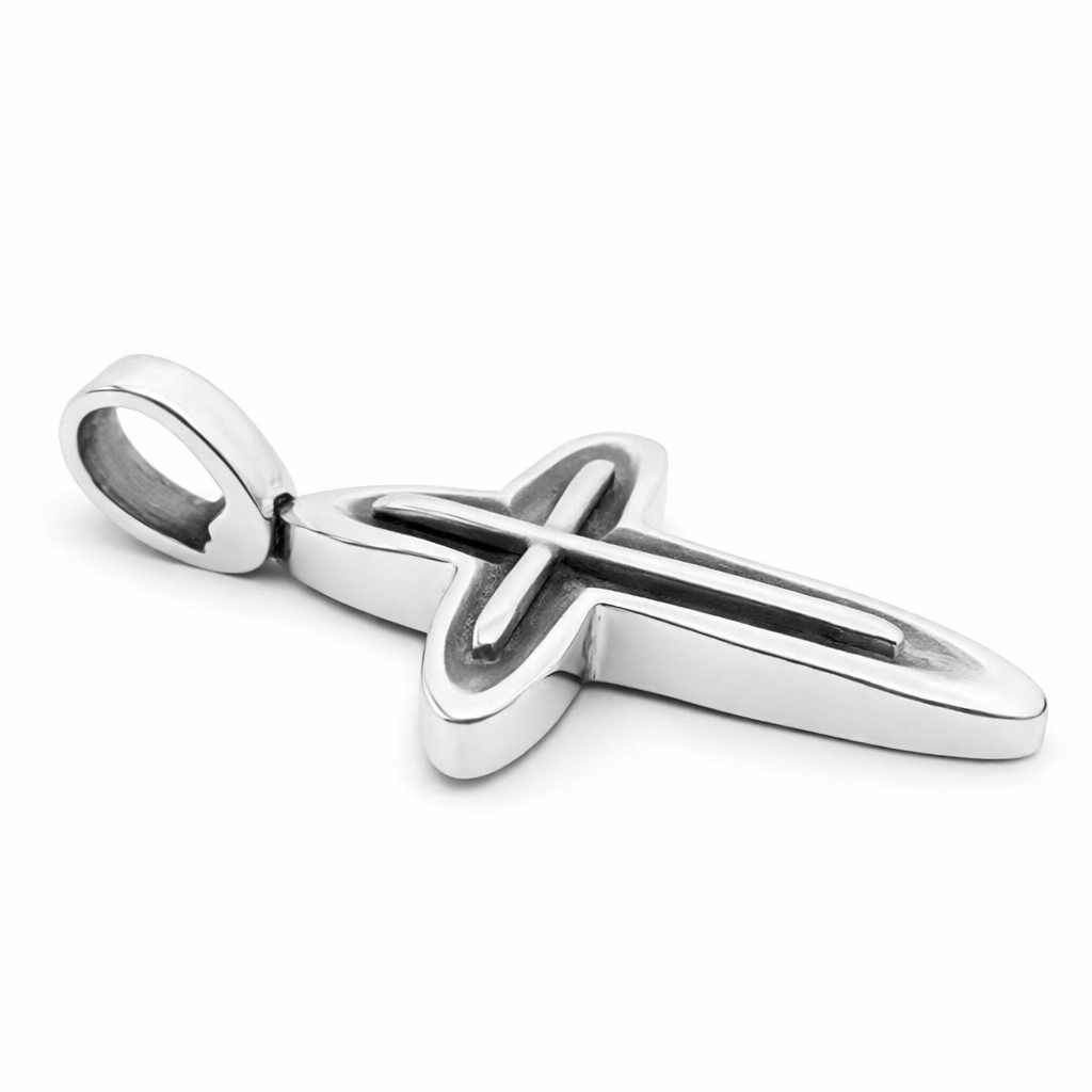 Χειροποίητος κομψός λευκόχρυσος σταυρός 14 καρατίων.