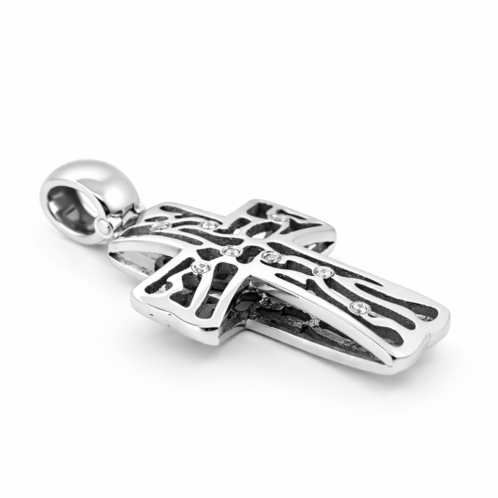 Χειροποίητος κομψός λευκόχρυσος σταυρός 14 καρατίων.