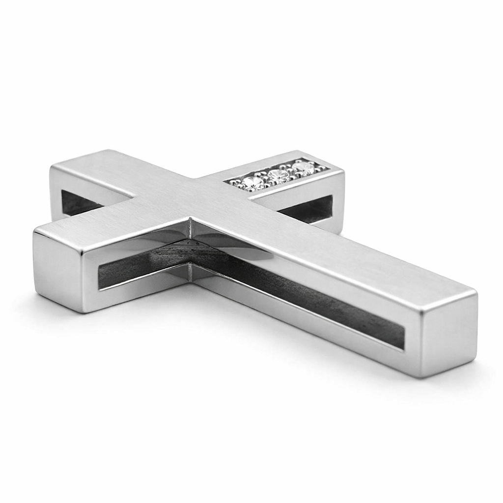 Χειροποίητος κομψός λευκόχρυσος σταυρός 14 καρατίων.