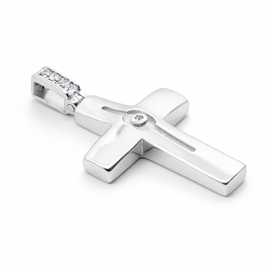 Χειροποίητος κομψός λευκόχρυσος σταυρός 14 καρατίων.