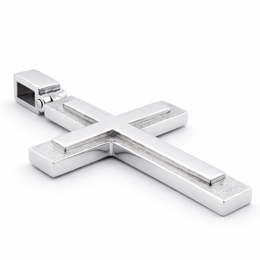 Χειροποίητος κομψός λευκόχρυσος σταυρός 14 καρατίων.