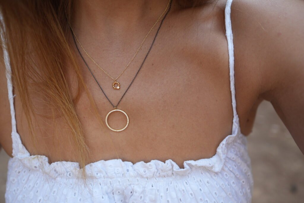 Χειροποίητο κομψό χρυσό μενταγιόν 14 καρατίων περασμένο σε χρυσή αλυσίδα.