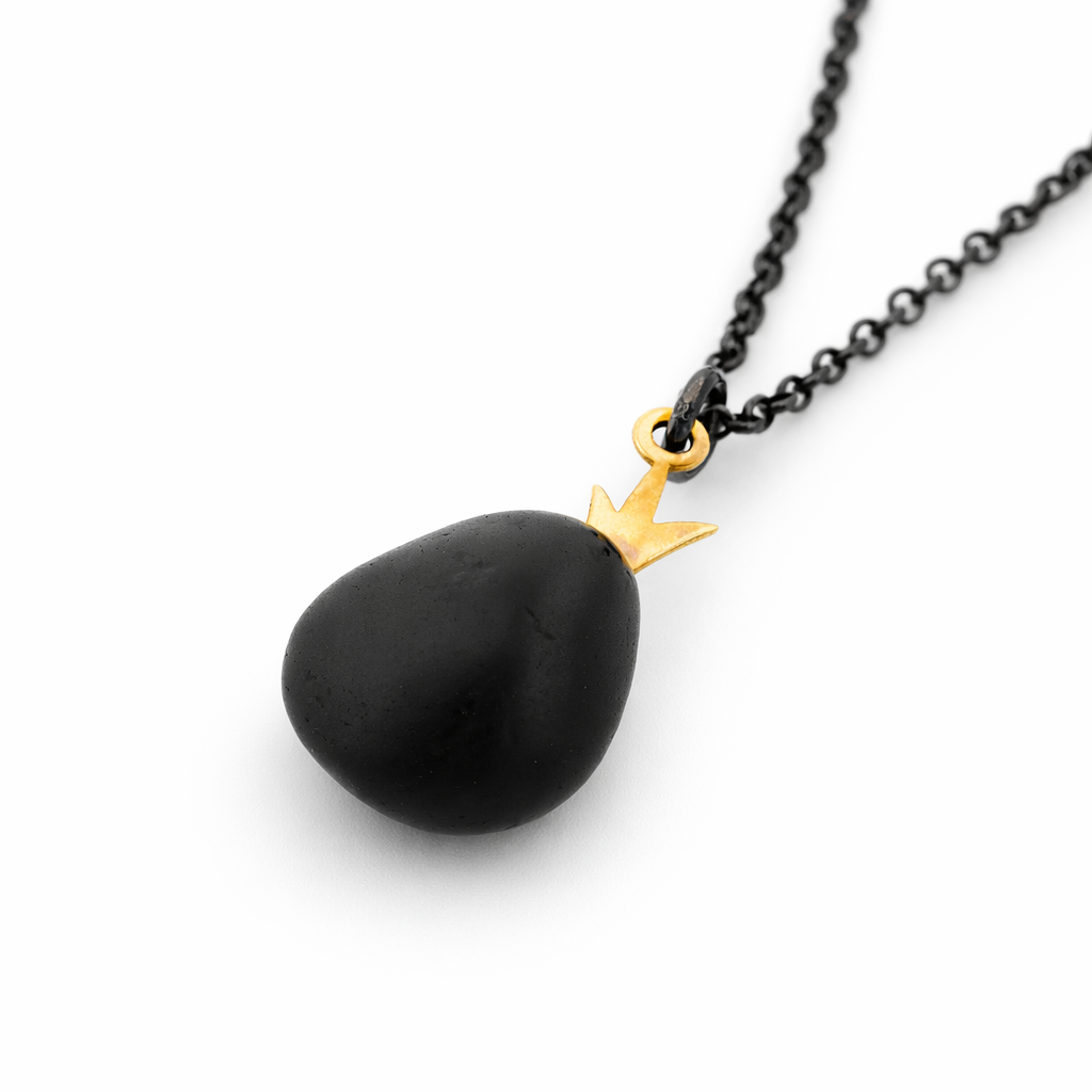 ag2 Jewellery Μενταγιόν χρυσό Κ18 με μαύρο βότσαλο και ασημένια αλυσίδα