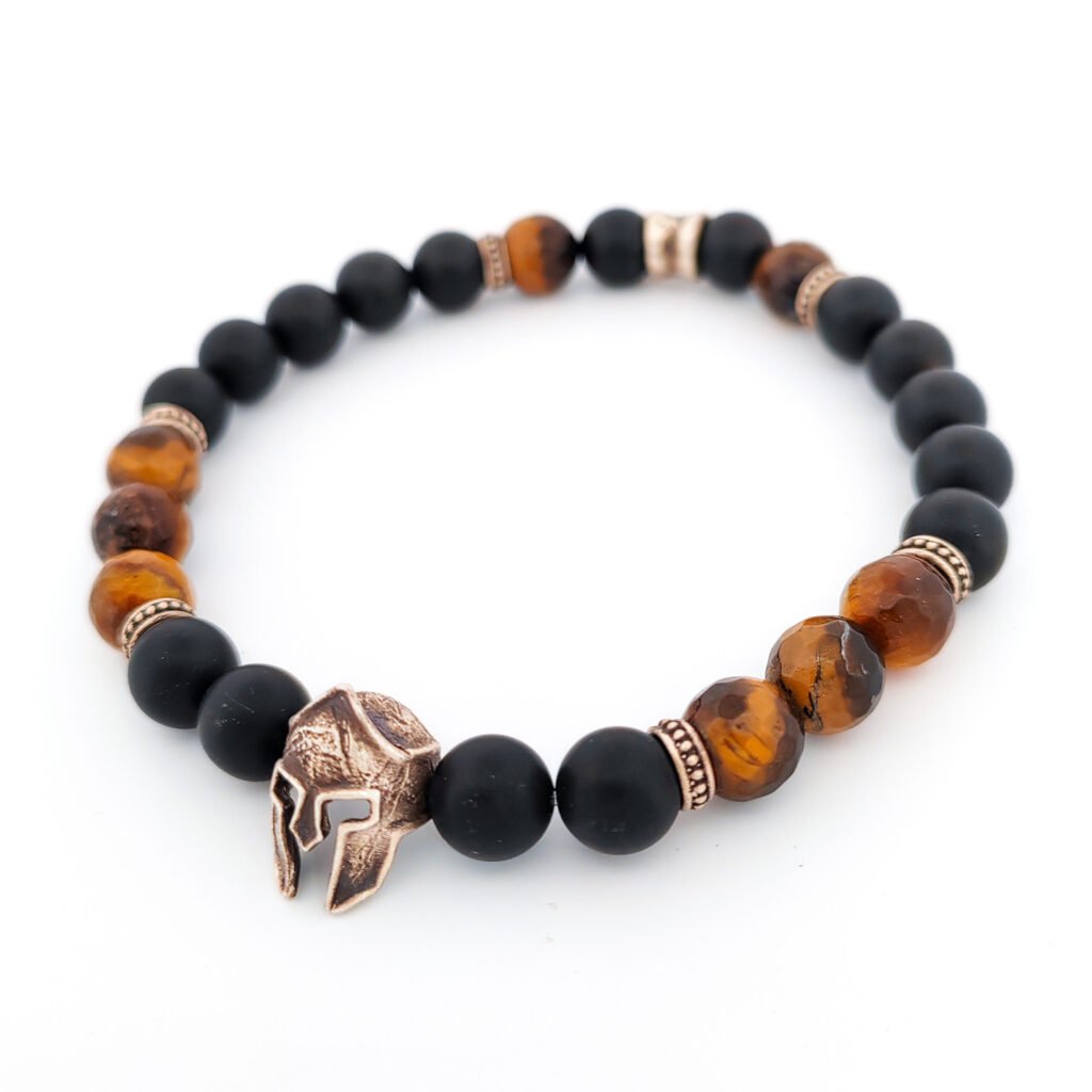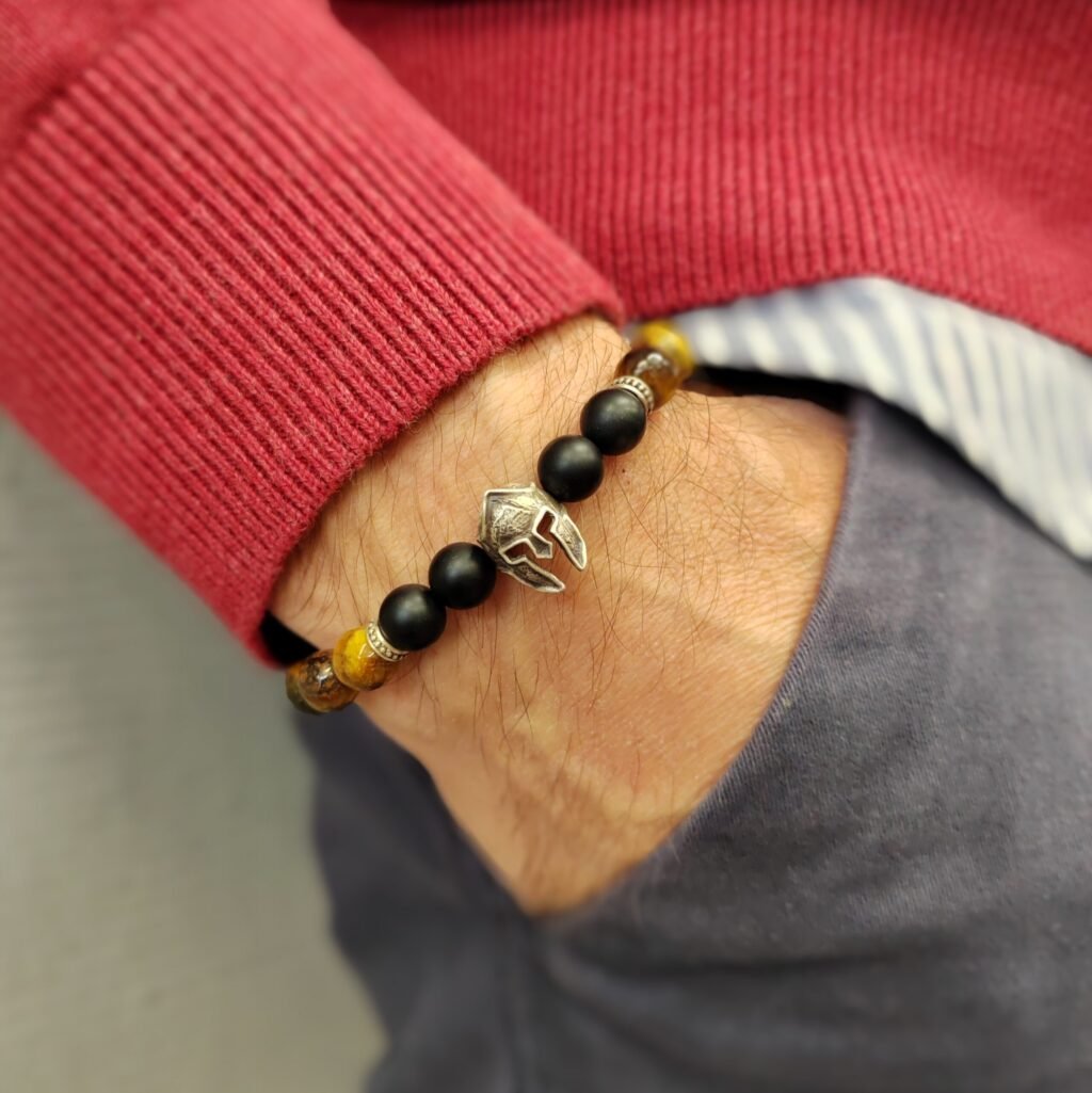 Aνδρικό ασημένιο βραχιόλι με μάτι της τίγρης και οψιδιανό.